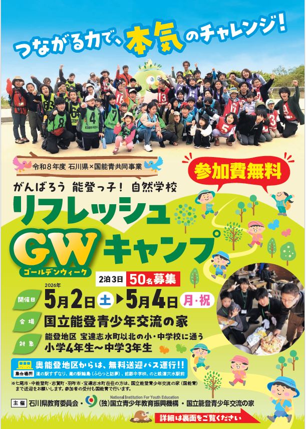 令和8年度石川県×国能青共同事業 がんばろう能登っ子!自然学校