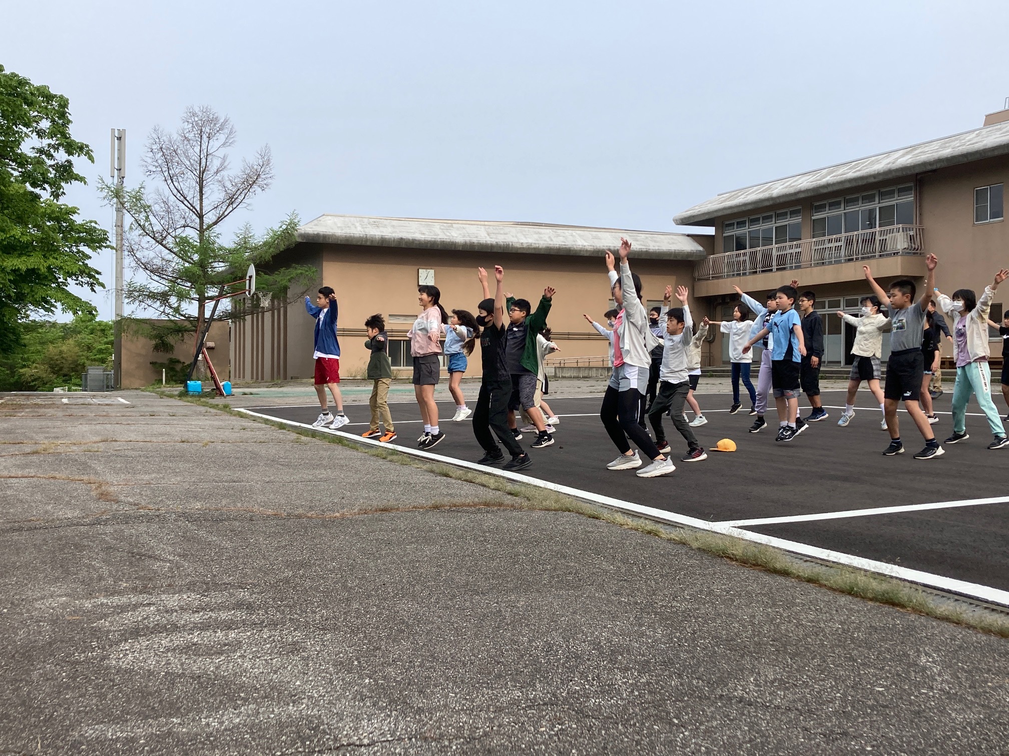 初めて会った仲間と、最初の共同活動「集合写真」 写真を撮る掛け声は、「交流のイェ~」
